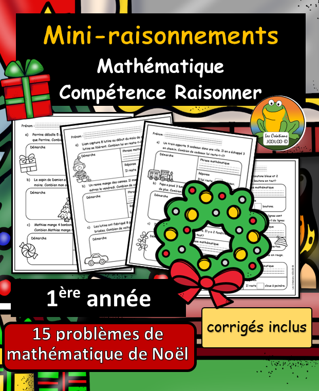 Voici de petits problèmes de raisonnement mathématique pour les élèves de 1ère année afin de travailler la compétence Raisonner en mathématique. L'èleve devra d'abord comprendre le problème pour mobiliser certains concepts mathématiques. Il aura a laisser des traces de sa démarche. Les concepts mobilisés comprennent l'addition et la soustraction dont la somme ou la différence ne dépasse pas 12.