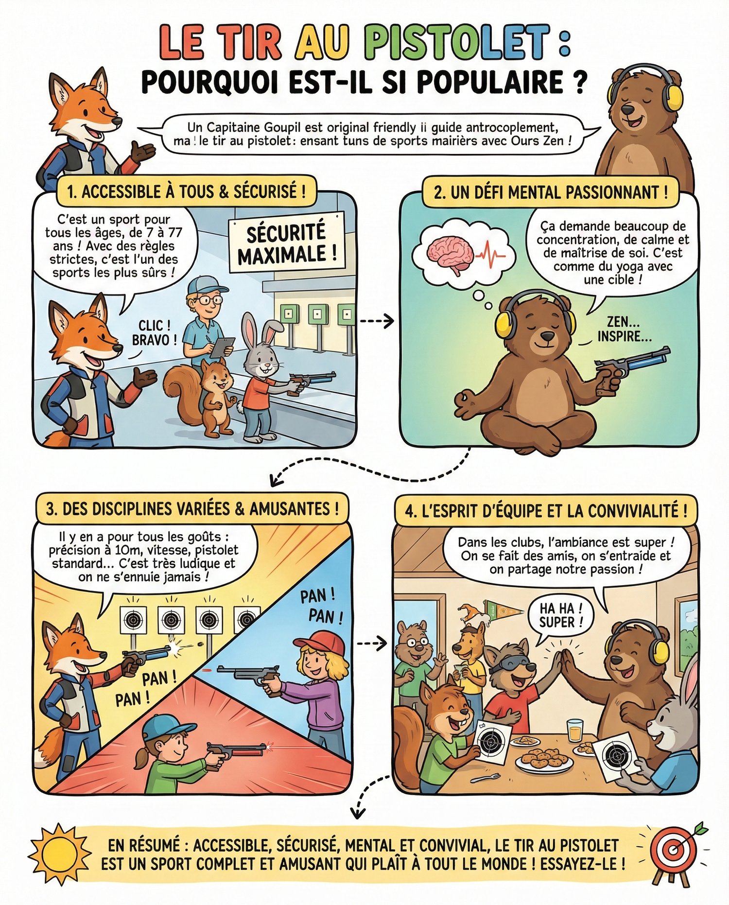 Cette ressource présente un sport entièrement en français à travers une série de pages infographiques au style clair et dynamique inspiré de la bande dessinée franco-belge.
