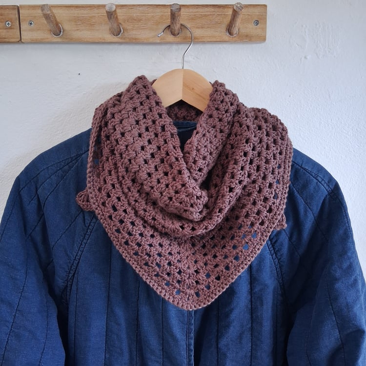 Crochet Pattern PDF - Sparrowhawk Scarf - Neckerchief Triangle Scarf - Cotton 4ply or Sport Weight - 3 Sizes