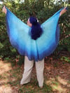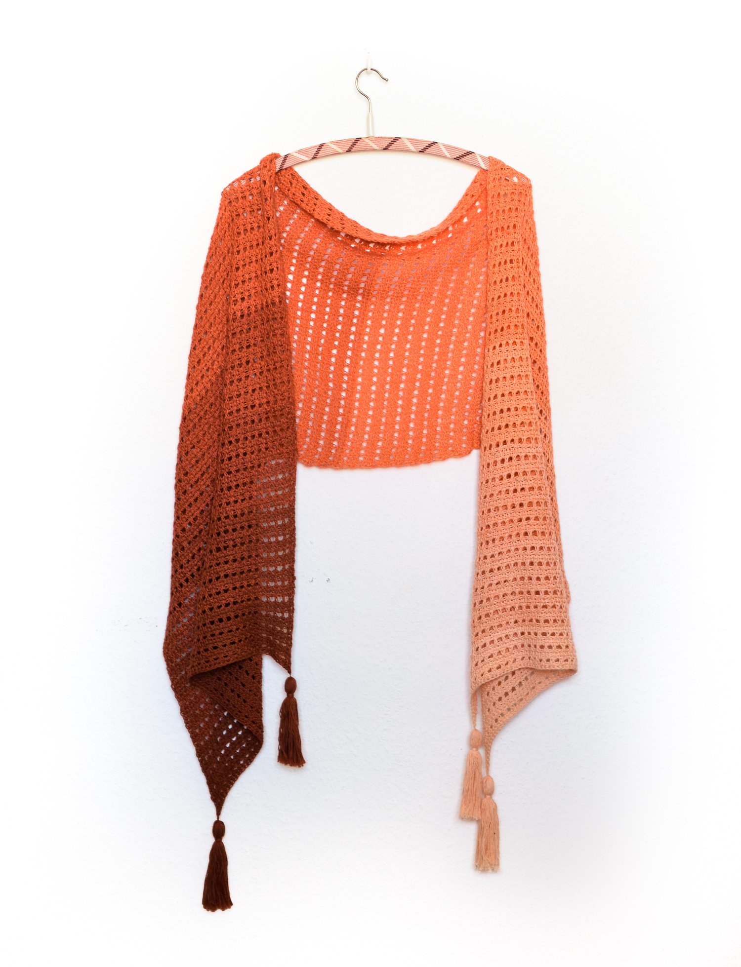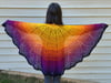 The pattern is made up of repeating wedges of stitches, which can be increased in number for a fuller shawl that covers the front of the body more.