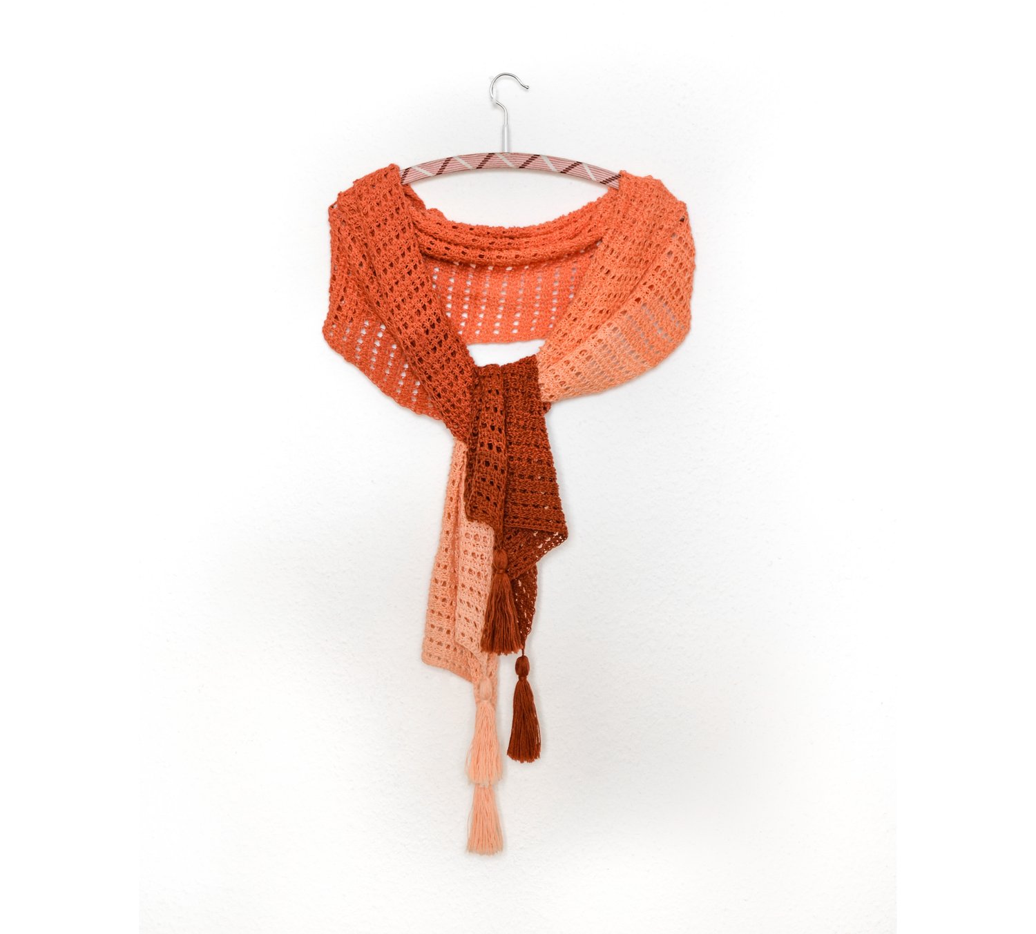 - Yarn – between 1000-1200 meters of size 2 cotton or cotton blend yarn with 400 m per 100 g; you can use 1-1.5 gradient cakes or get a custom 1000-1200 m gradient cake;