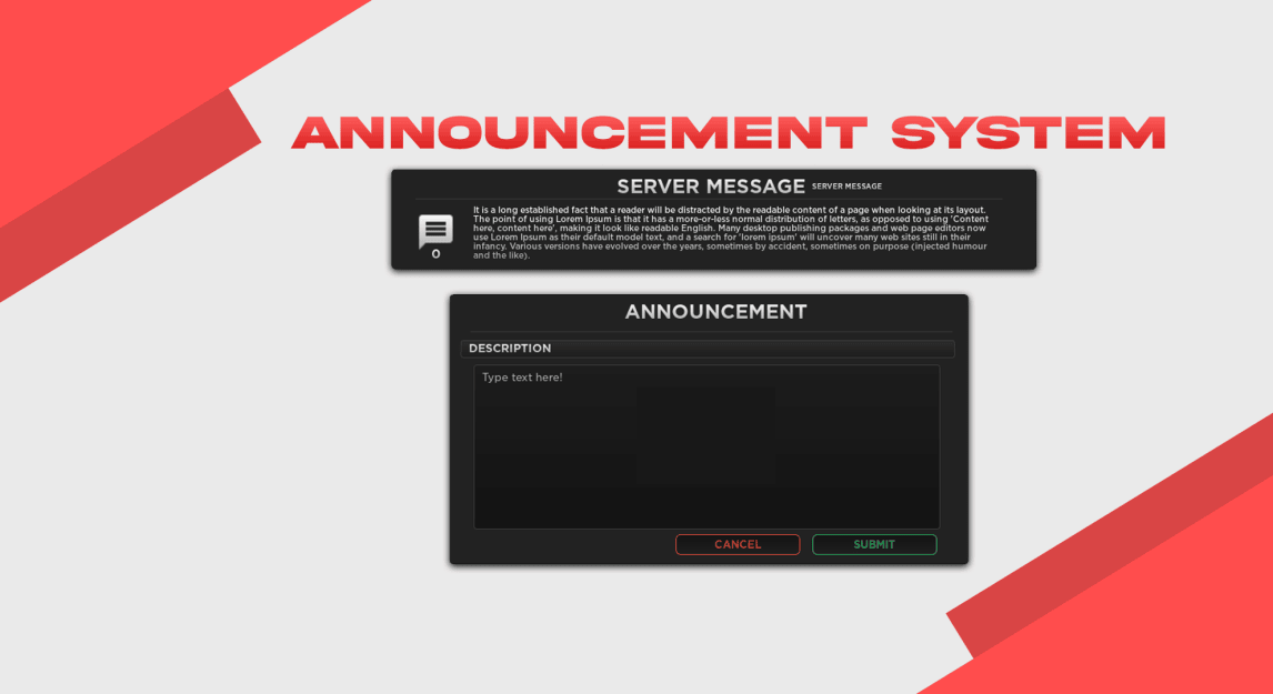 Unlock the ultimate gaming experience with our Military Game UI, specifically designed to elevate your game's performance. Host tryouts, announce events, manage game passes/store, track profiles, customize settings and enforce game rules all in one seamless interface.