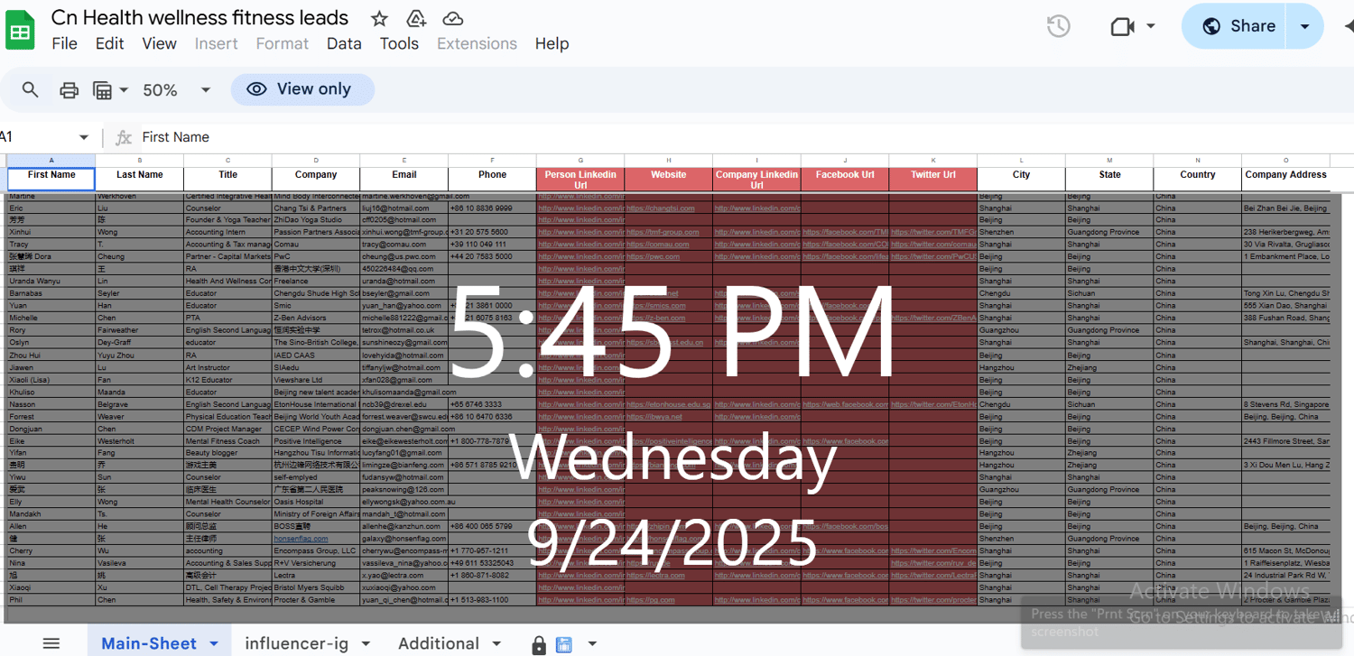 China 1k leads health & wellness, nutrition, fitness, biohacking, beauty, or holistic lifestyle fields
