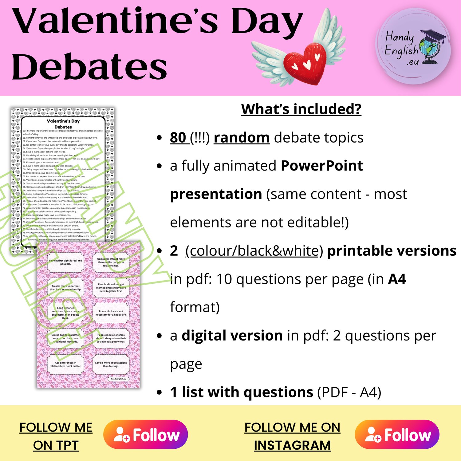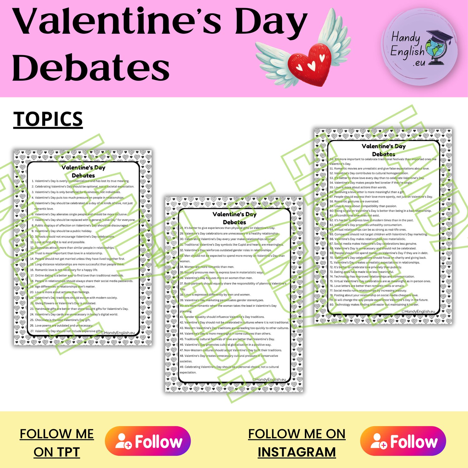 Valentine's Day: Debates & Conversation Starters ESL ELA ELL