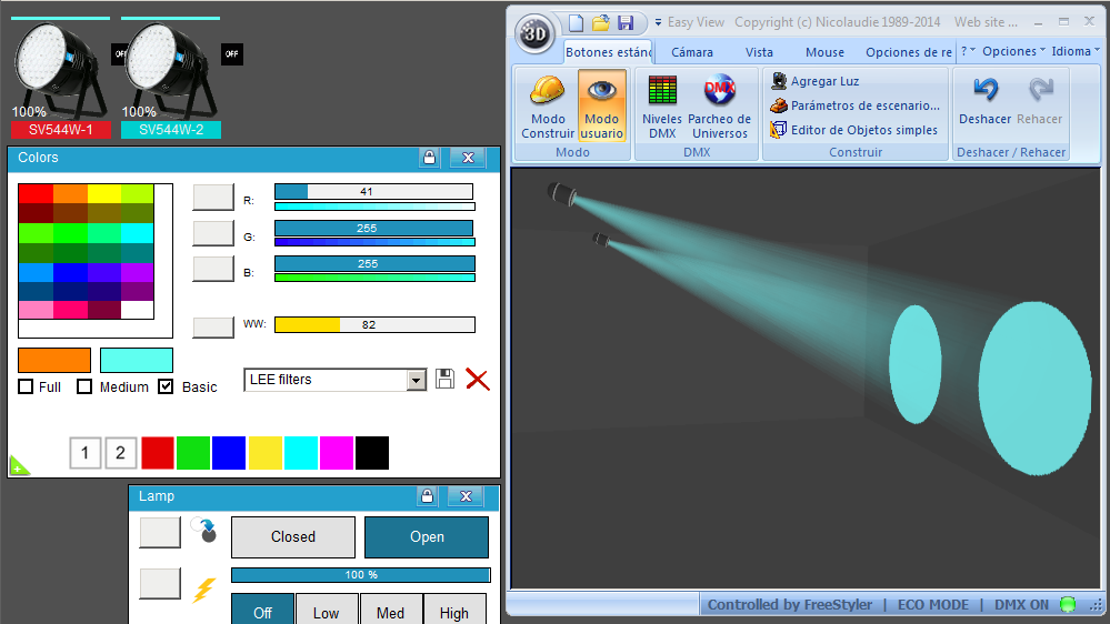 Esta Librería SSL2 está optimizada para trabajar con Magic 3d Easy View. Es decir para ver una representación 3D de las secuencias que estemos realizando con Freestyler, QLC+ o cualquier otro soft que se conecte con Magic 3d.