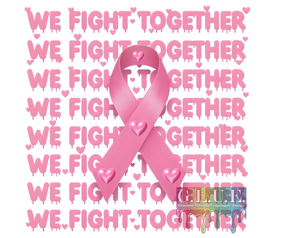 - Includes glossy pink ribbon layered over “We Fight Together” text