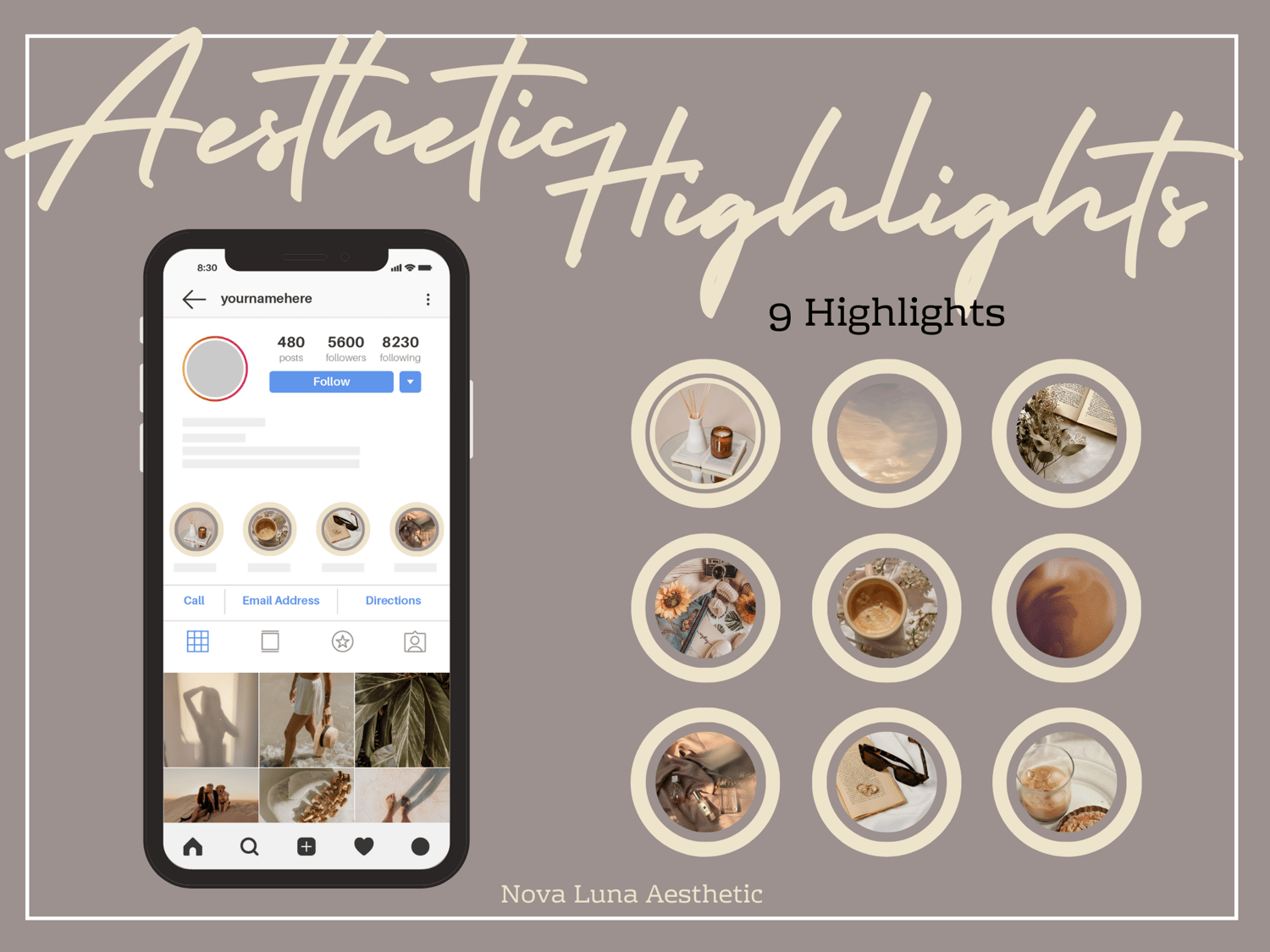 These carefully curated story highlight covers in a soothing cream color palette will elevate your profile's aesthetic. Let your Instagram stories stand out with our iconic Instagram covers that embody elegance and minimalism. Create a cohesive and beautiful theme for your Instagram profile effortlessly.
