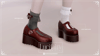 Platform shoes with a decorative sock, lace and ribbon.