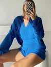Fall Winter Two-Piece Knit Short Sets Women Casual Simple Style Loose Long Sleeve Lapel Pullover Tops Shorts Outfit