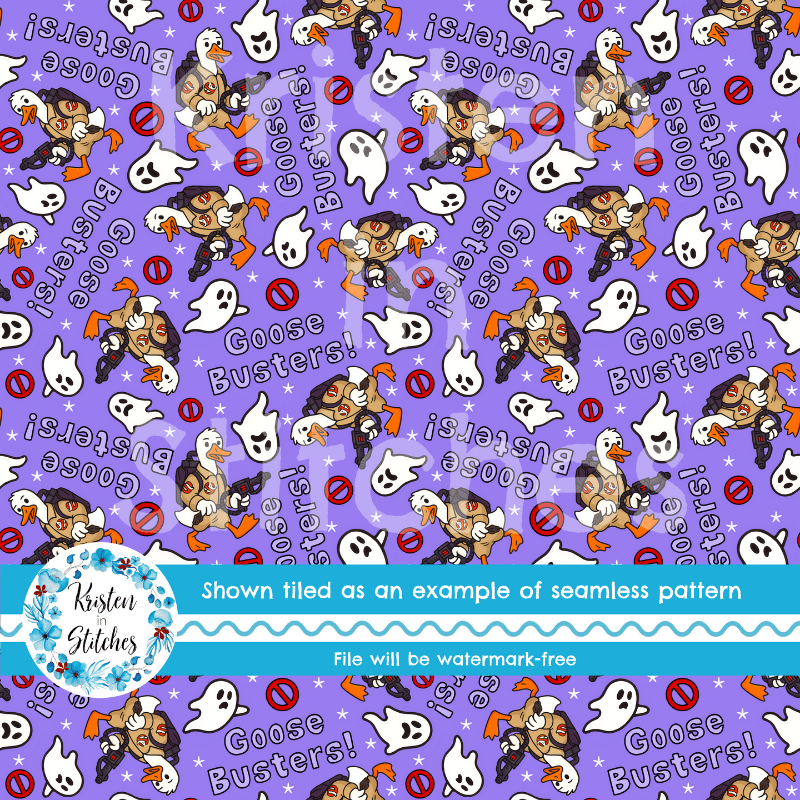 Goose Busters Halloween Ghost Hunters Seamless Pattern