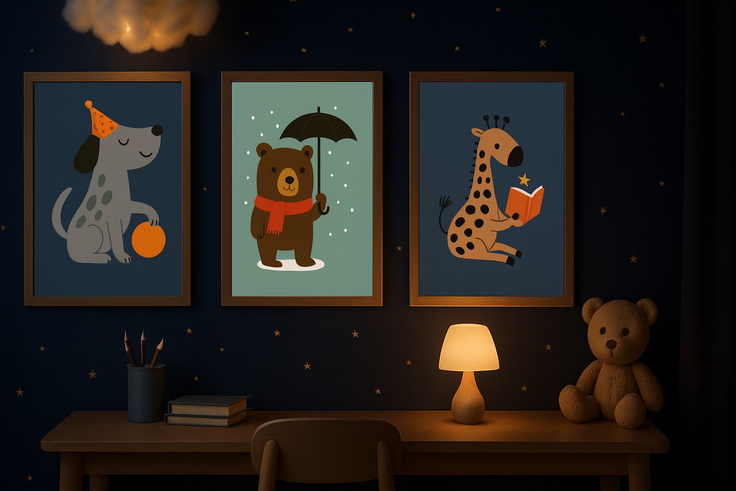 - โ 3 digital wall art prints (Bear, Dog & Giraffe)