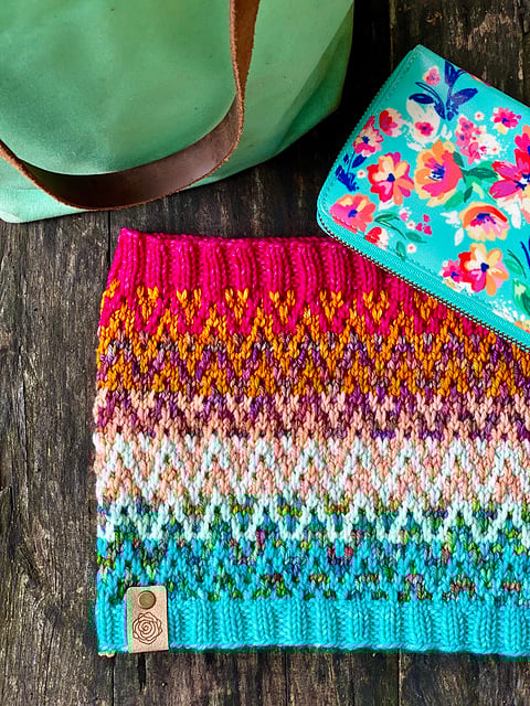 The Find Your Way Cowl is knit using the mosaic method of colorwork. A perfect way to try your hand at 2 colors! It uses slip stitches and alternating colors every two rows, so no need to worry about floats and tension! It’s a really cool way to knit colorwork! Experiment with colors and have fun with it! 2 full skeins of worsted will give you 2 cowls, one in reverse of your first! Amazing!