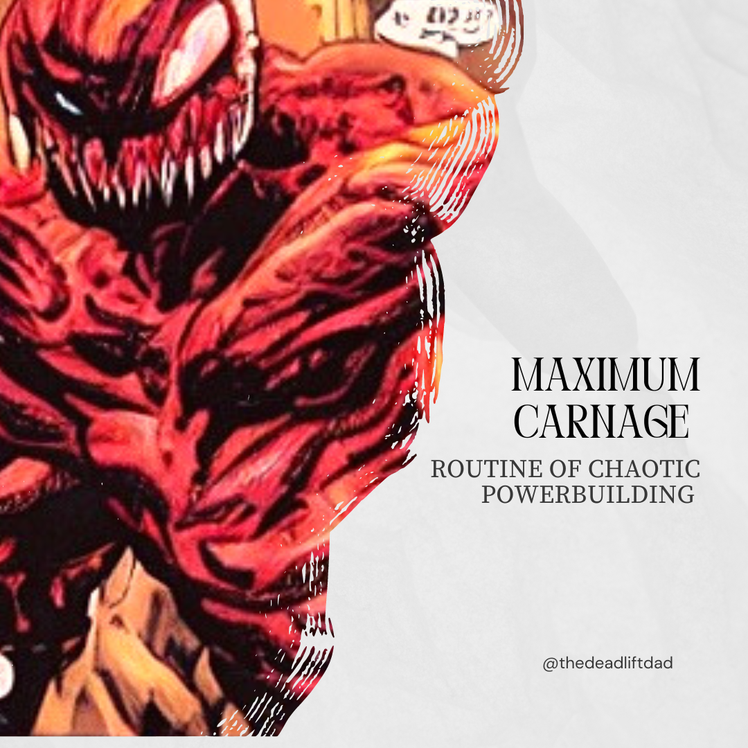 If you're looking for a workout routine that will test your limits and leave you feeling like a true champion, then look no further than Maximum Carnage, brought to you by Thedeadliftdad. This routine isn't for the faint of heart. It's a battle between you and your body, and you'll need to bring your A-game if you want to come out on top. You'll push yourself to your limits and beyond, feeling the burn and the pain with every rep. You'll sweat, you'll curse, and you'll scream, but you'll keep going because you're a warrior. Maximum Carnage isn't just a workout routine, it's a way of life, and Thedeadliftdad is here to guide you through it. Are you ready to take on the challenge?