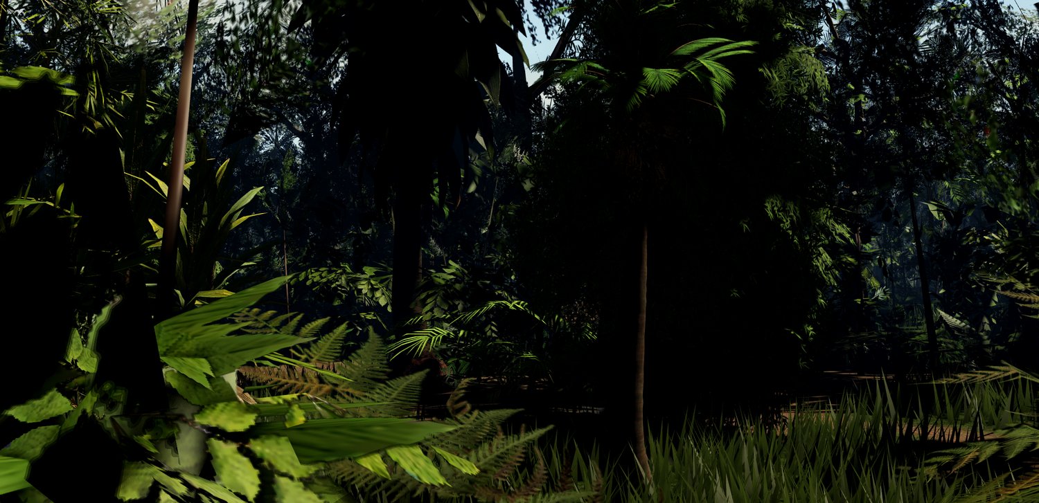 - Dense tropical jungle biome with layered foliage, trails, and wide sightline breaks