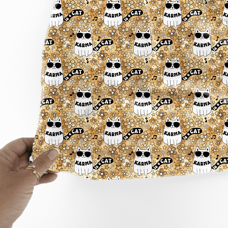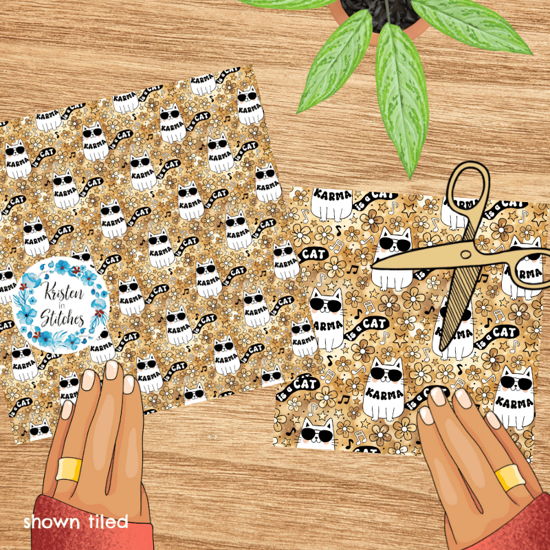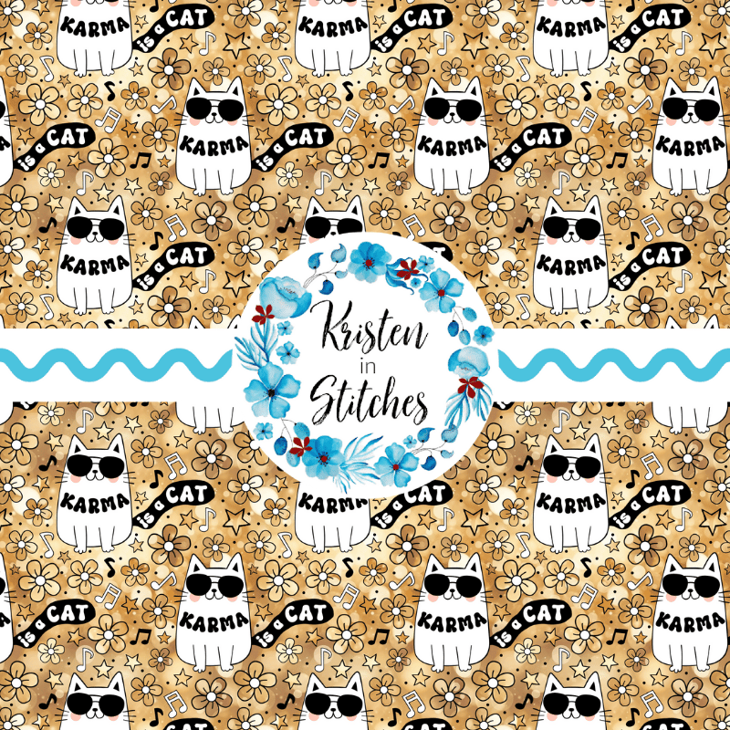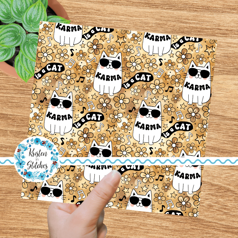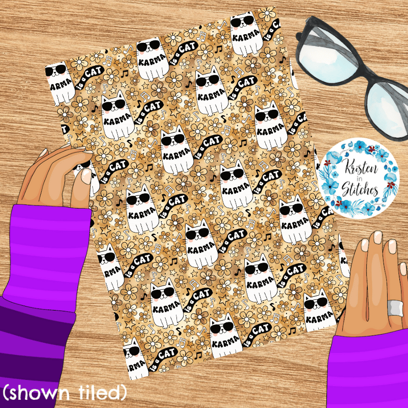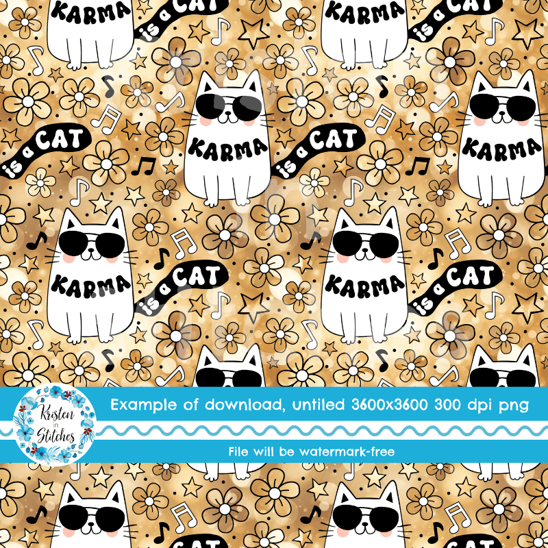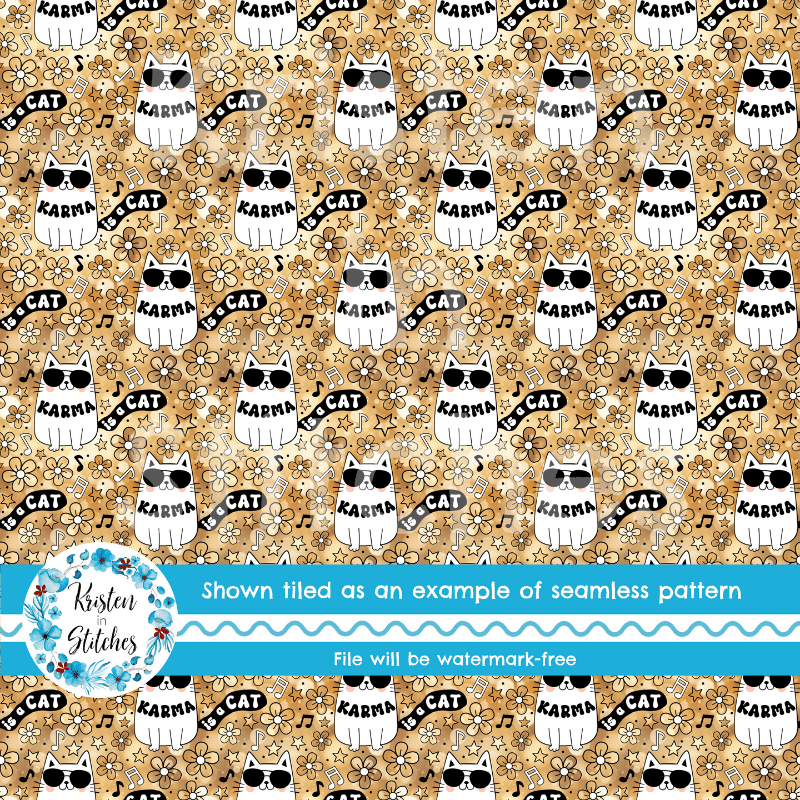 Karma is a Cat Seamless Pattern, Daisy Flowers Music Notes