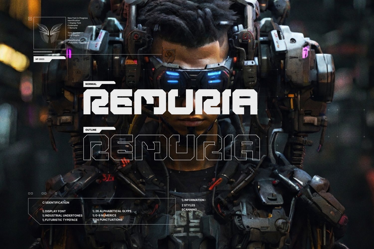 Remuria Typeface is a bold display type with a futuristic vibe. Simple in a good way and efficient with tight kerning making it a great choice if you want a future look to your design. Remuria would be perfect for Futuristic Headline, Tech Theme, titles, logos, clothing brands, IT Website (landing page), and sci-fi film projects.