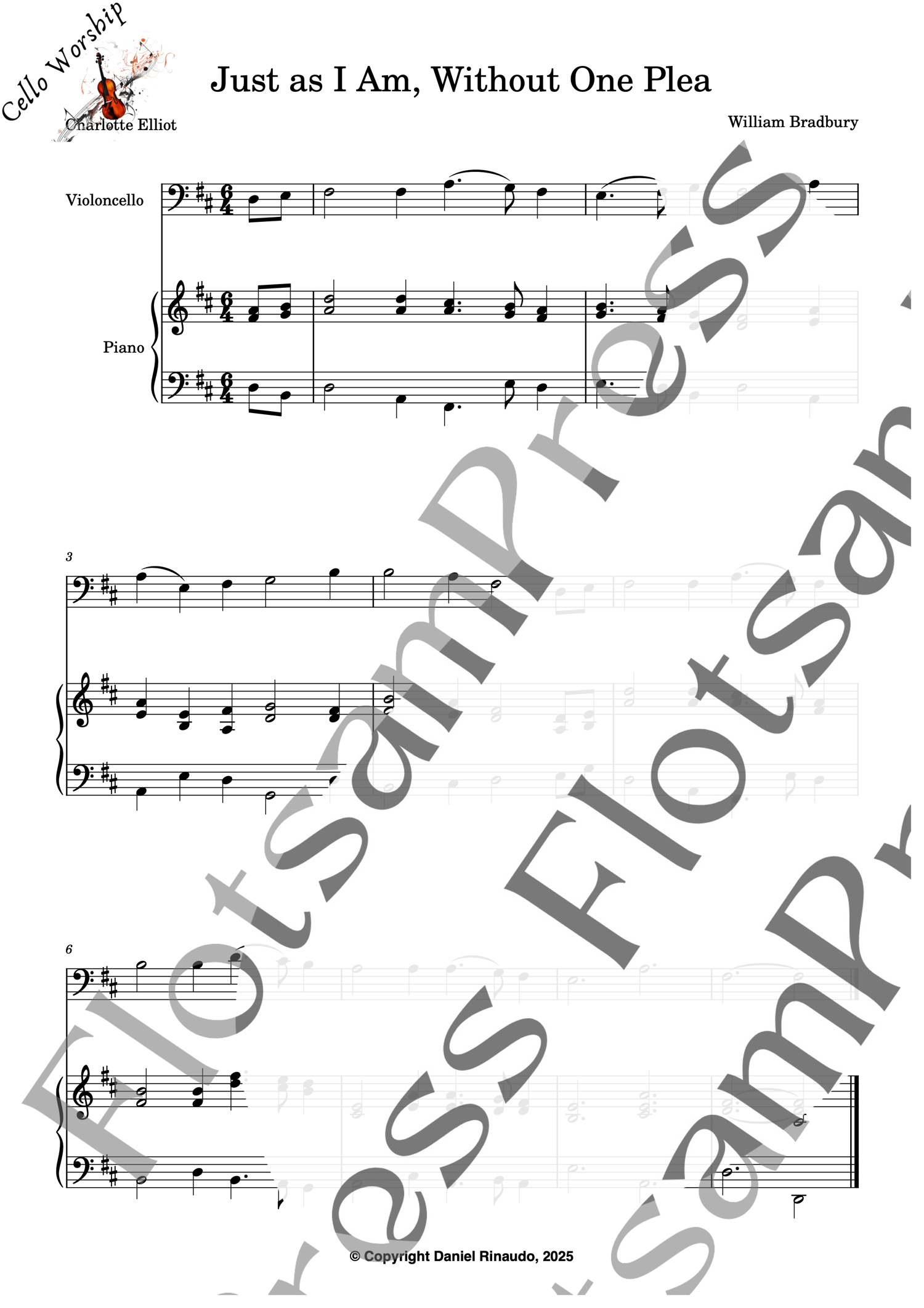 This arrangement of Just as I Am, Without One Plea is written for beginner to lower-intermediate cello players, with a simple and supportive piano accompaniment. Perfect for church services, lessons, or home practice.