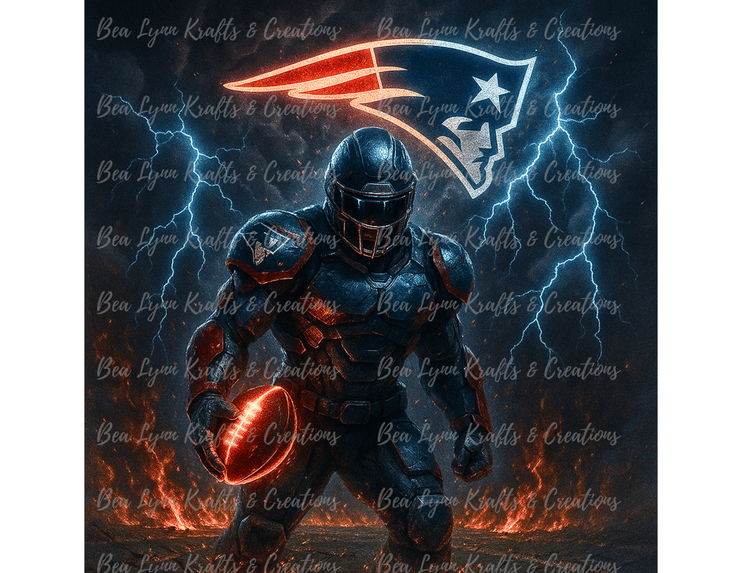 Charge into the storm with this New England Patriots Warrior PNG — a digital masterpiece that combines futuristic grit with Patriot pride! Clad in battle-ready red and blue armor, this powerhouse gladiator grips a glowing red football as lightning erupts behind him. The bold Patriots logo surges above in electrified glory, setting the stage for epic fan gear, merch, and next-level creations.