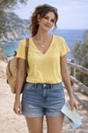 ☀️ Tee-shirt jaune col V – détail dos ☀️