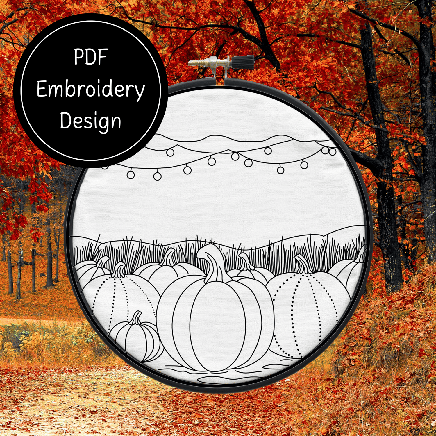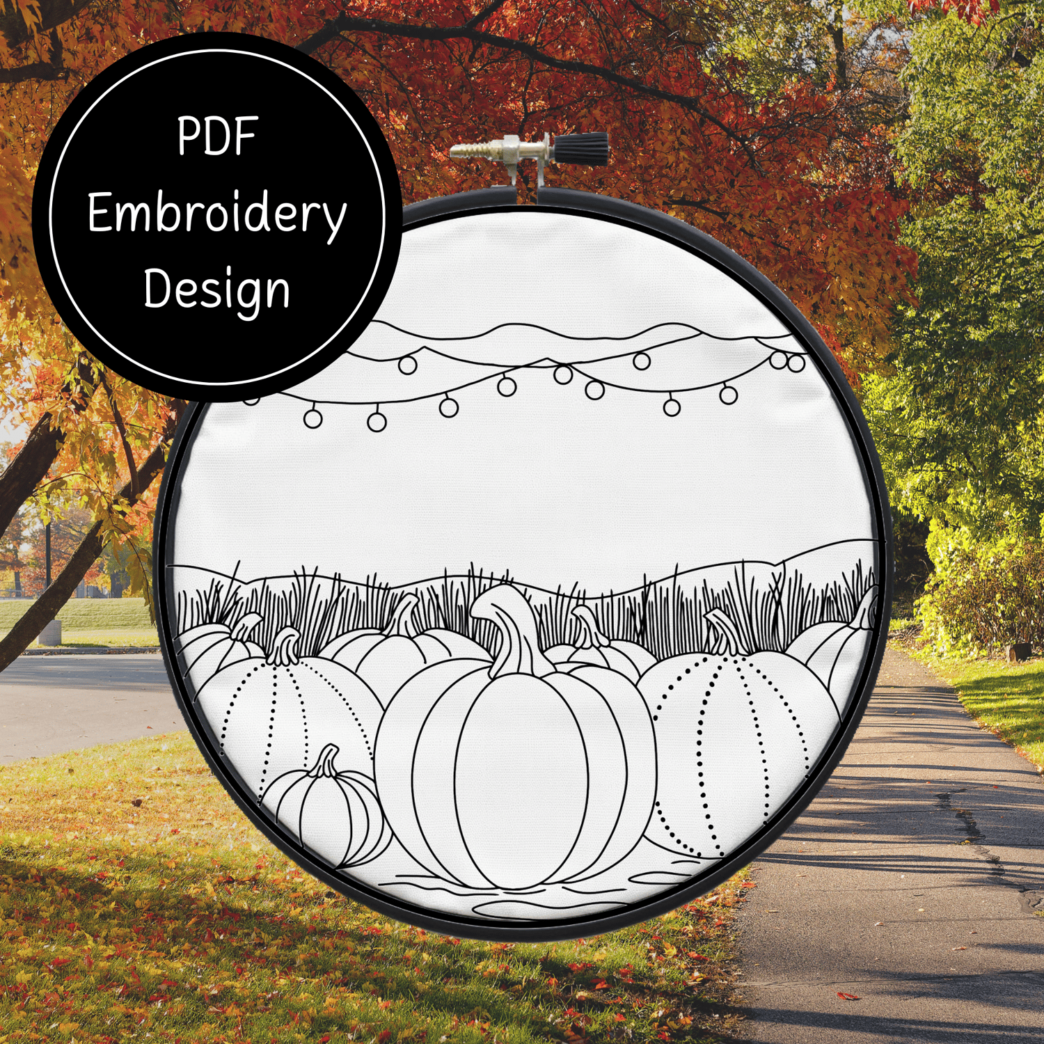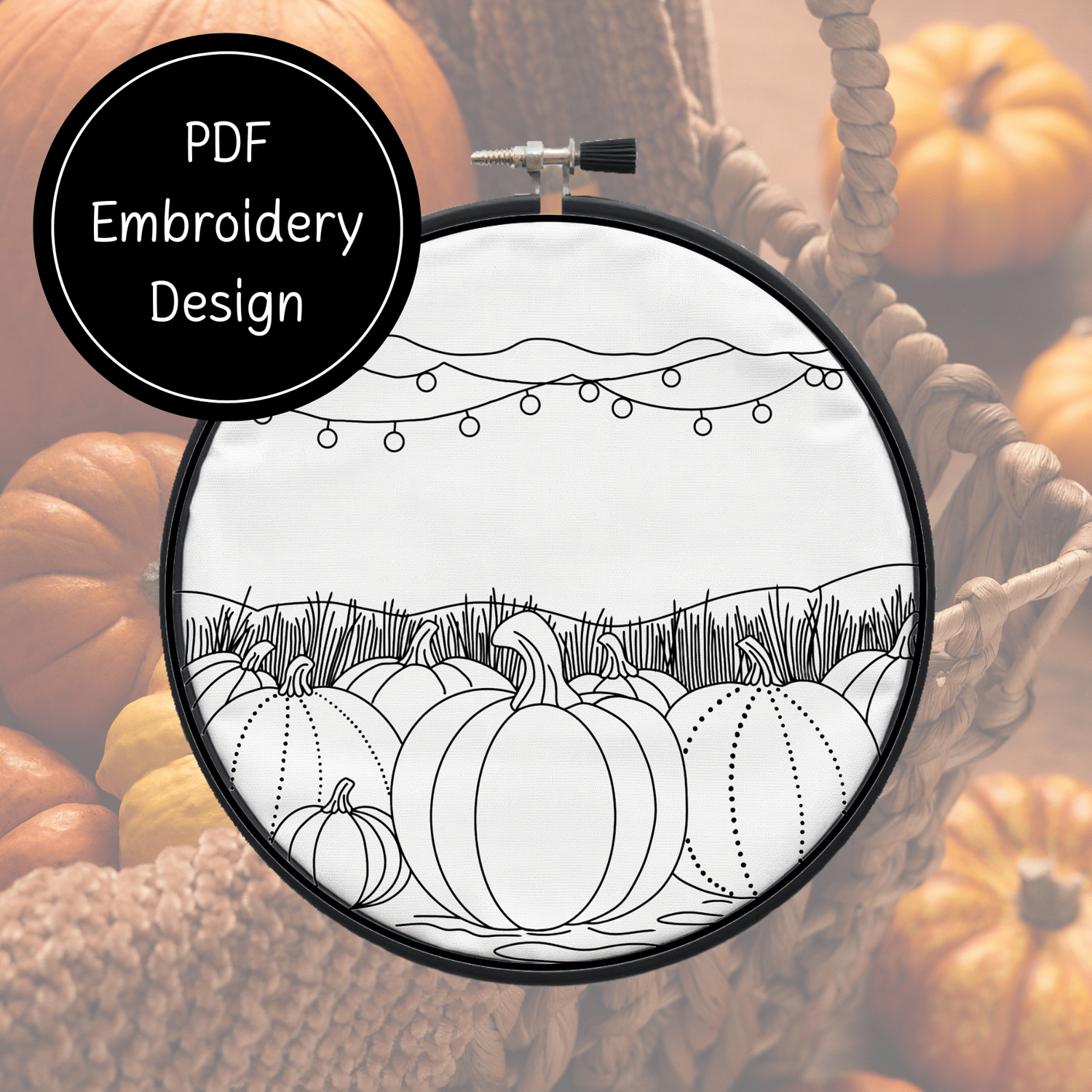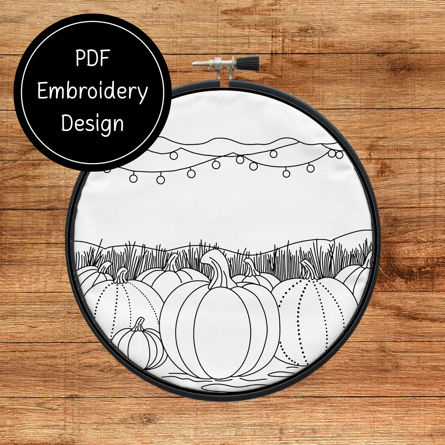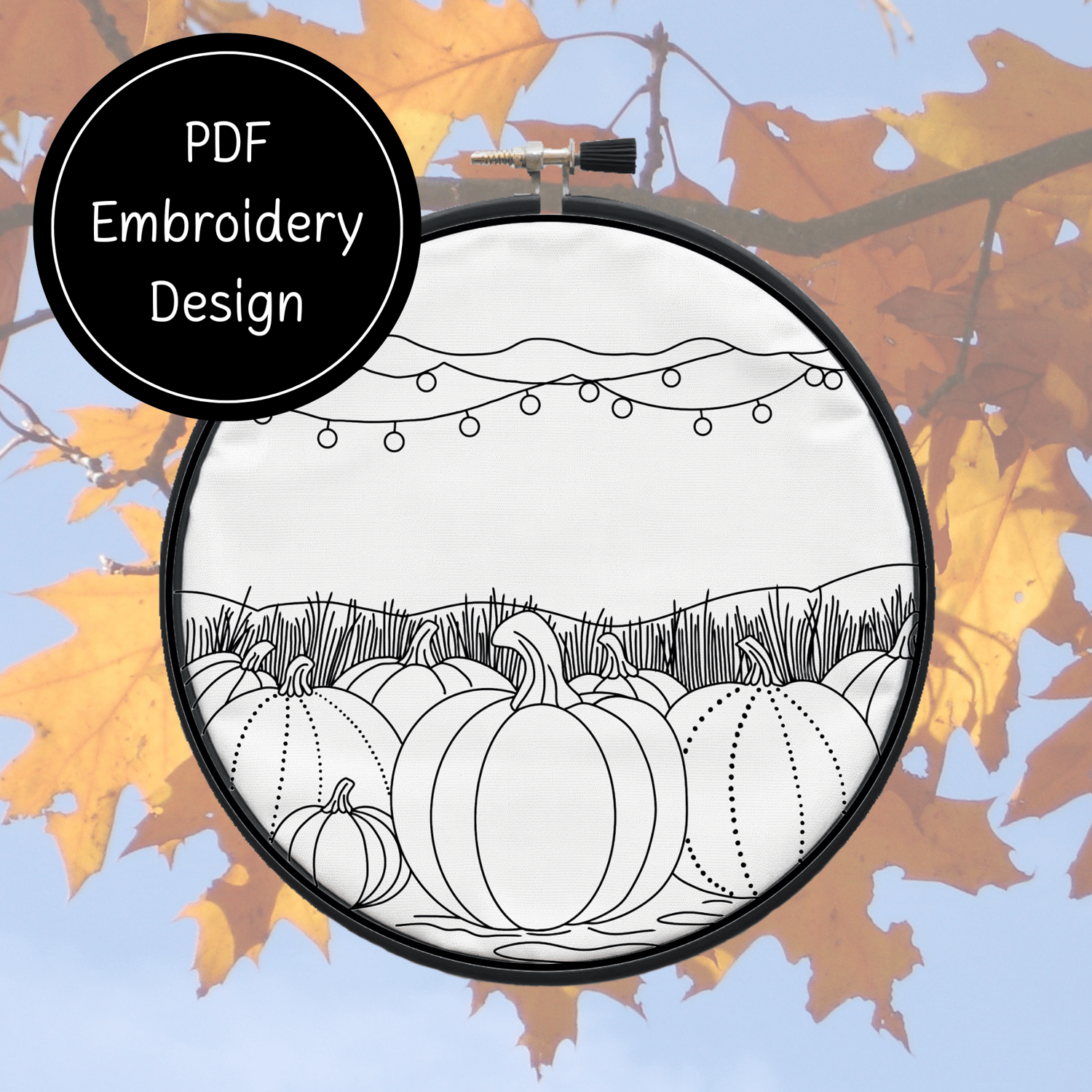 Pumpkin Farm Embroidery Template PDF - DIY Fall Design For Hand Stitching - Instant Download