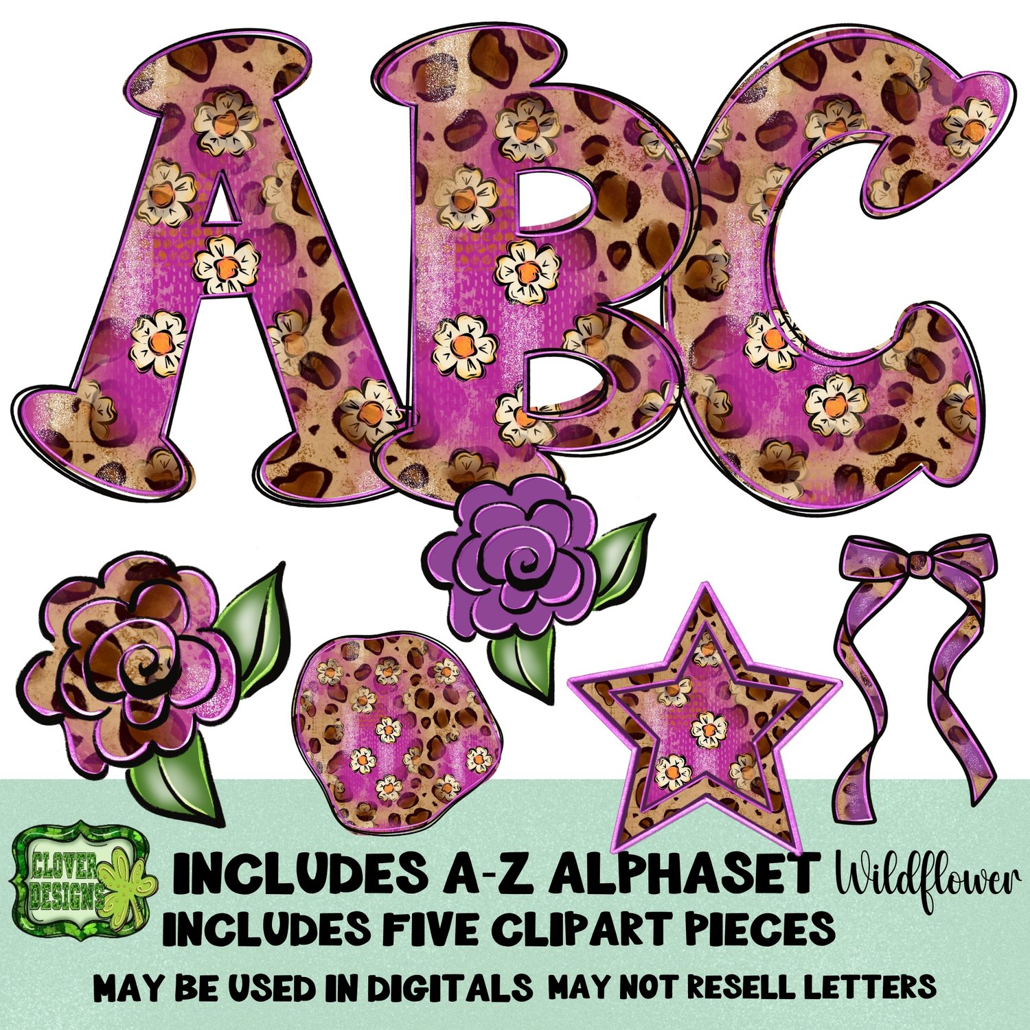 Wildflower Alphaset Pngs 5 clipart pieces included