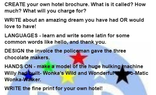 After reading and doing this novel, Charlie and the Chocolate Factory would make the perfect follow up, although if the students have read that, this story gives us all the story of how Willy came to own and run a chocolate factory.