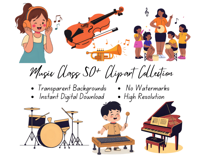 Music Class 50+ Clipart Collection | High-Resolution Digital Printables | Instant Download | No Watermark