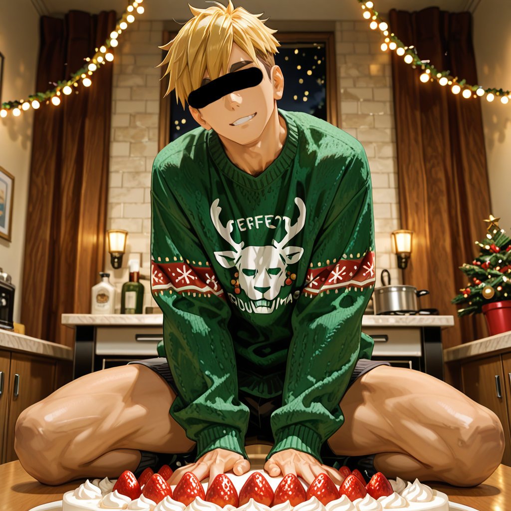 クリスマスをテーマに、サンタやトナカイコスプレをしている男性を、キャラクターごとにお任せ作成しました。男らしいキャラクターの魅力を思い切って表現しました。