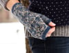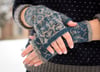 In the mad rush of Mexico City, on la Avenida 5 de Mayo, sits an old palace covered in the famous blue-and-white tiles of Puebla. I’ve long planned to design something inspired by la Casa de los Azulejos, but things never seemed to click until I had these two beautiful skeins of yarn left over from another project. I suddenly realized they were just the colors I needed to bring my old idea to life. One is a brilliant blue that’s almost an exact match for the famed tiles, while the other is a silvery gray scattered with brown, blue and black speckles, perfect to reflect the signs of age and wear on the otherwise white tiles. With these yarns in hand, the design easily came together, and a pair of soft, warm mitts with a standout all-over colorwork pattern was born.