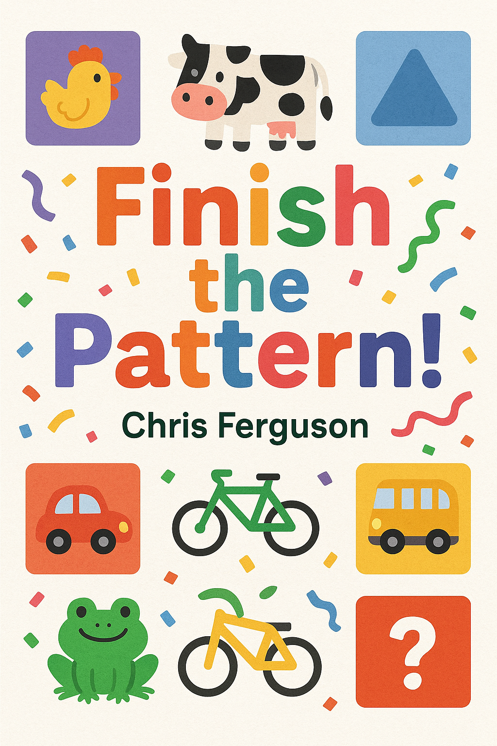 Finish the Pattern! is a fun and interactive guessing game book that helps children explore the magic of patterns. Each page invites kids to look closely, spot the sequence, and predict what comes nextโwhether itโs fruits, animals, shapes, colors, vehicles, or ocean creatures!