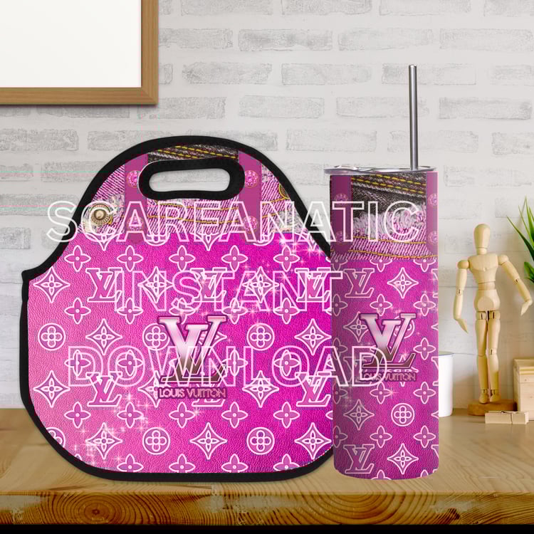 Pink Denim and Black Snakeskin Leather VL 20oz Tumbler and Lunch Tote PNG Design Bundle