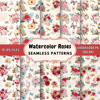 Watercolor Roses & Vintage Elements Seamless Patterns