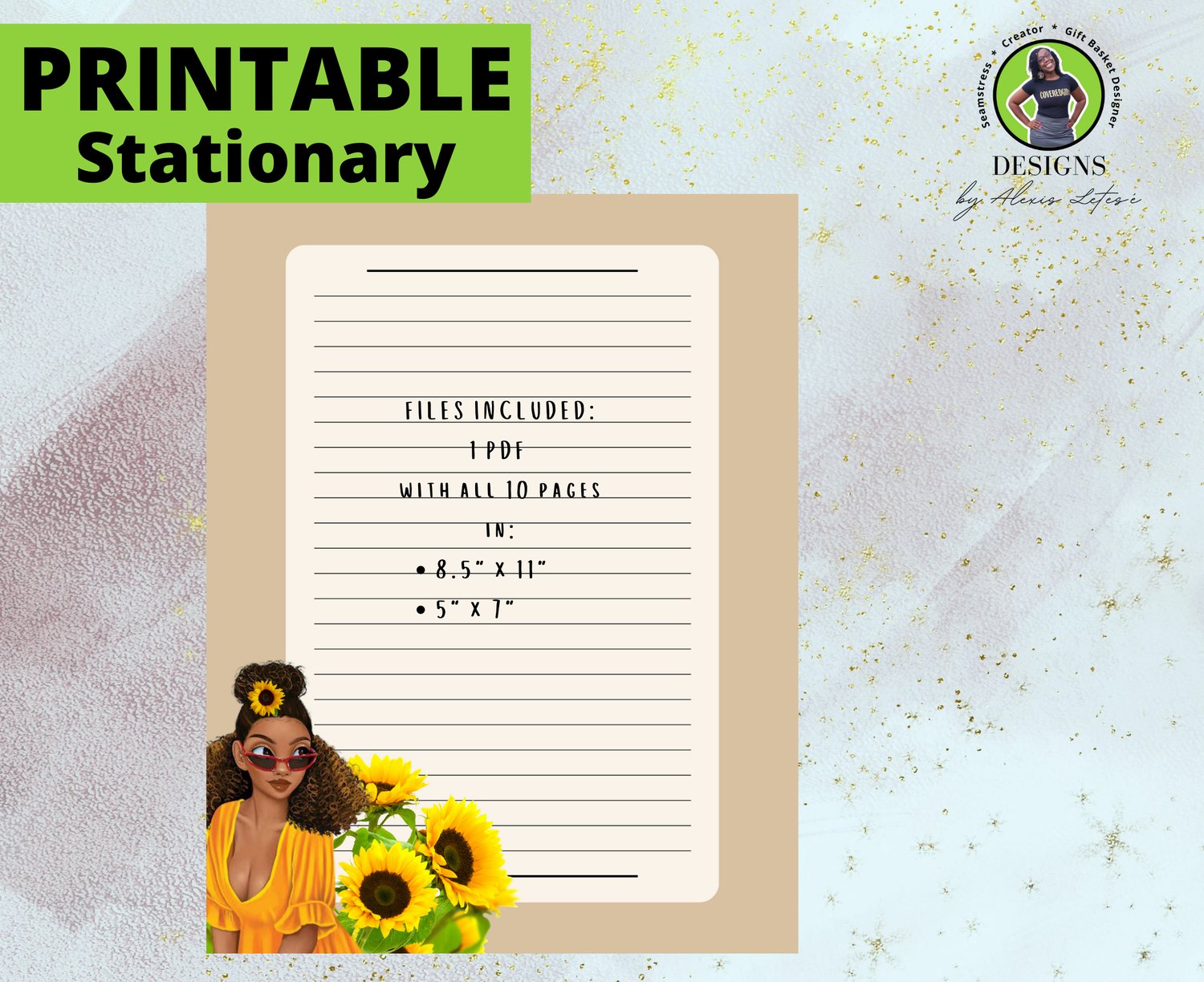 Black Girl Magic Sunflower Stationery | Digital Printable Writing Paper | 8.5x11 and 5x7 Sizes | African American Journal Pages | Instant Download