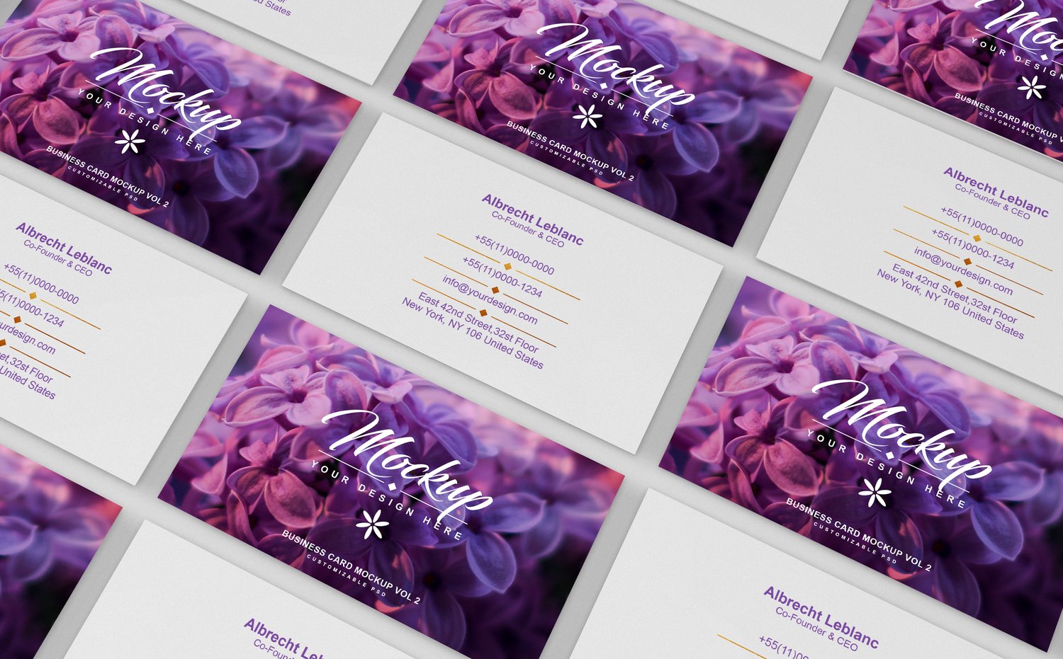 7 Business card mockups, get a profesional presentation of a business card in minutes, only a few clicks are required to change the design, colors, texts, shadows, levels, background, background color, textures and blur effect.
