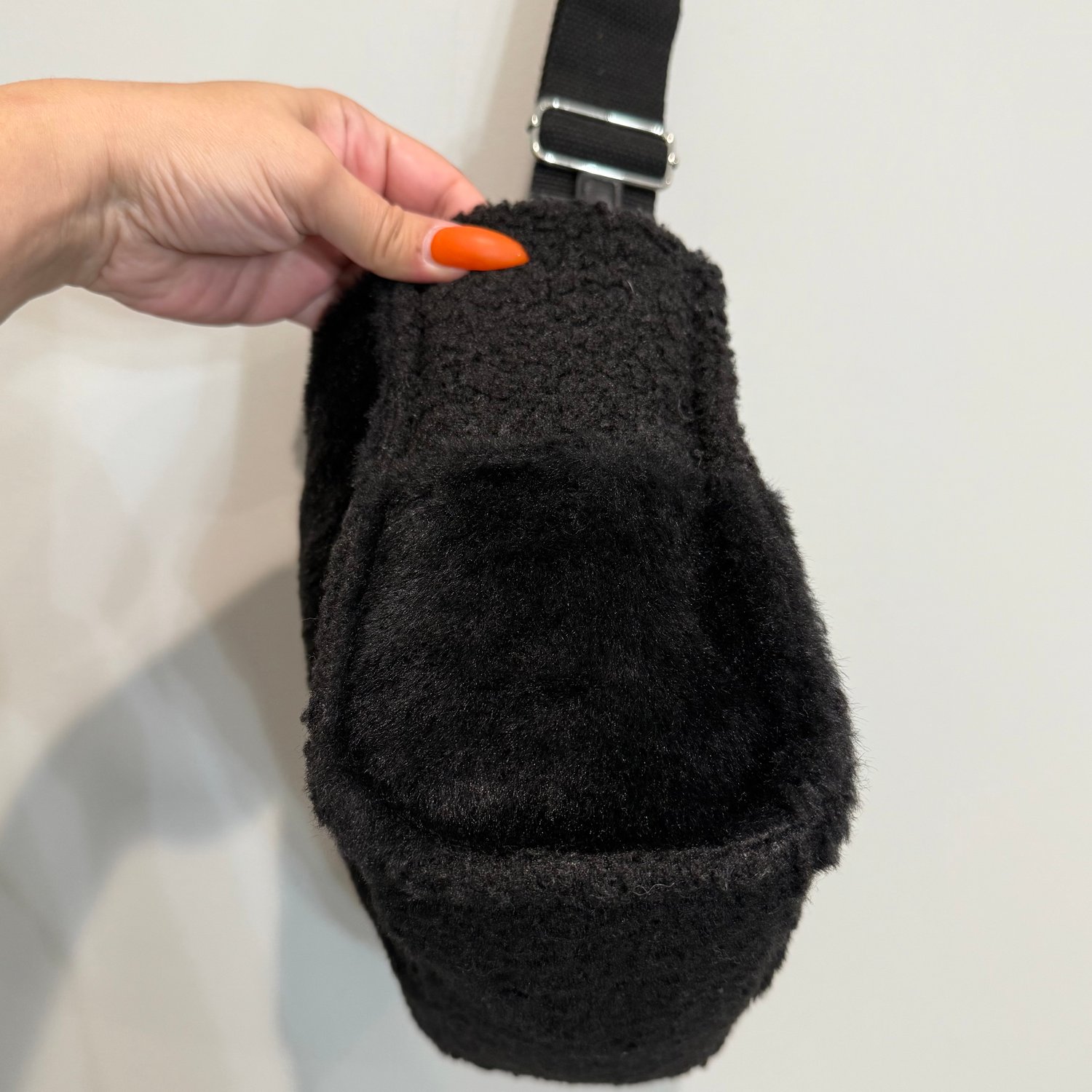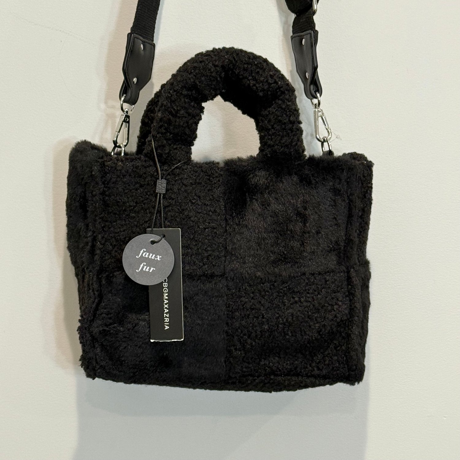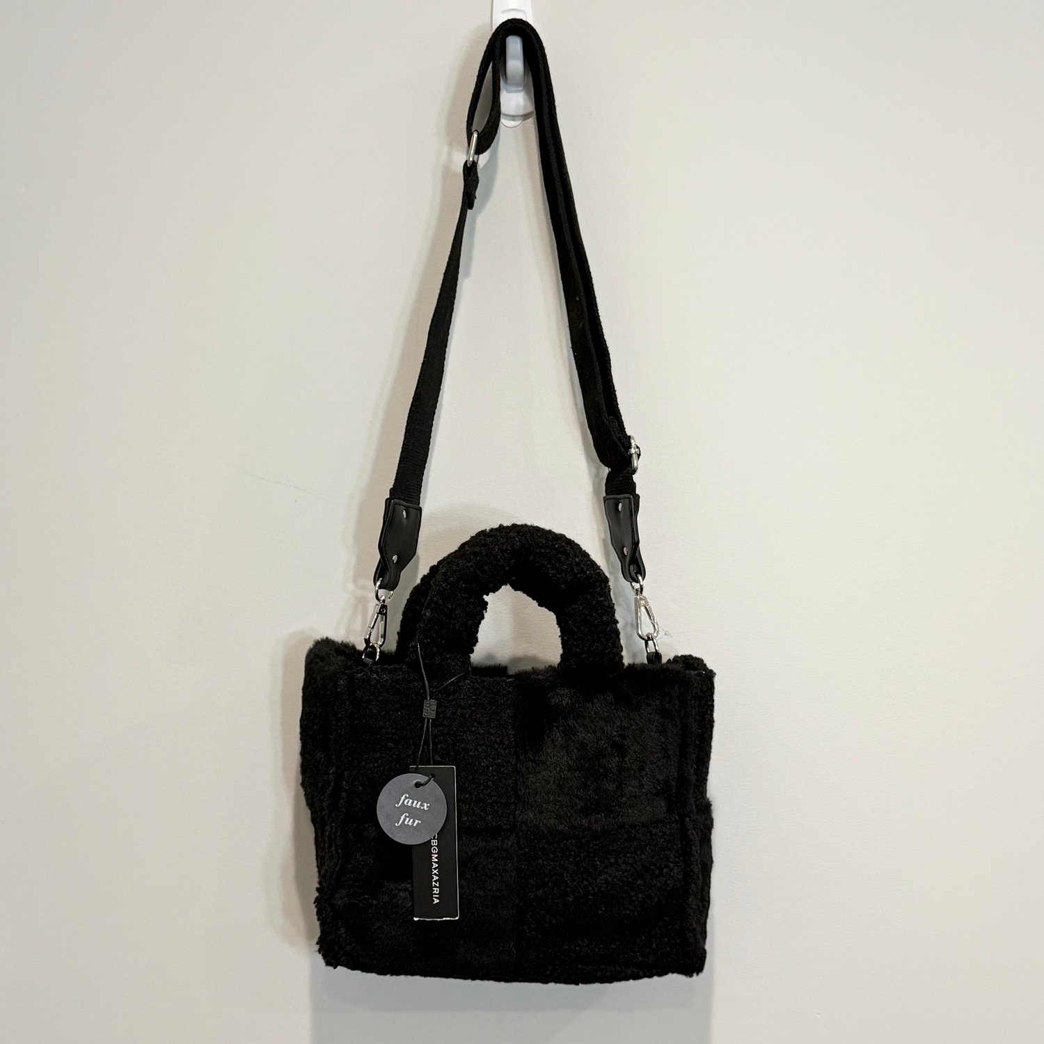 BCBG Maxazria black faux fur/sherpa shoulder or crossbody bag - NWT!