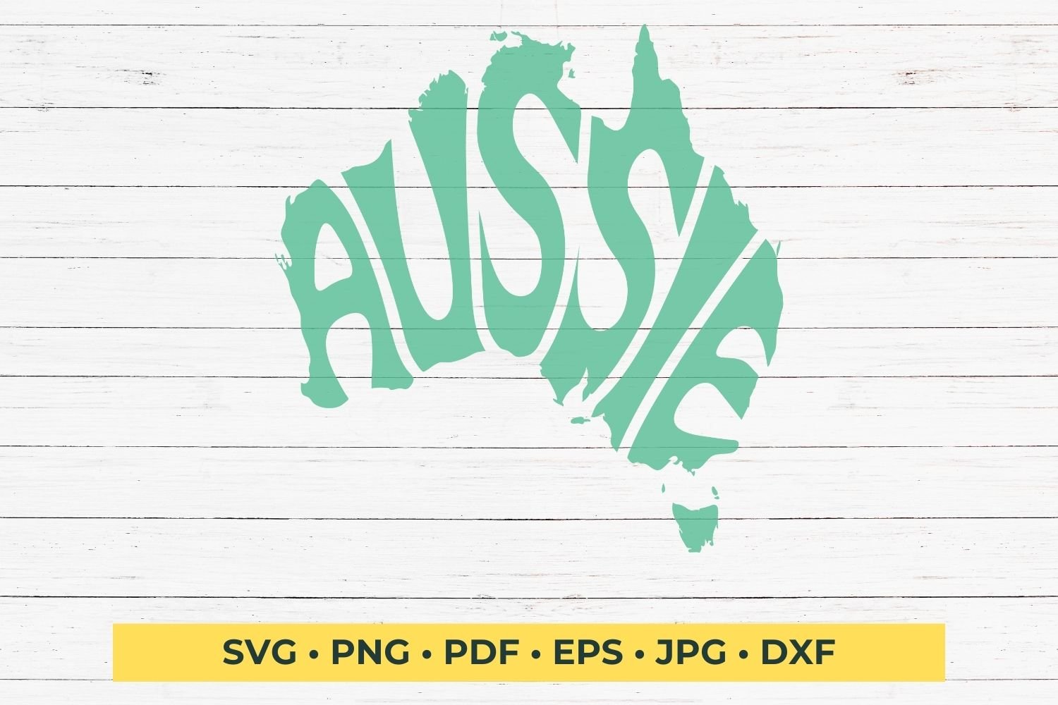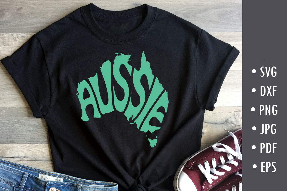This design features the word Aussie, creatively made into the silhouette of Australia.