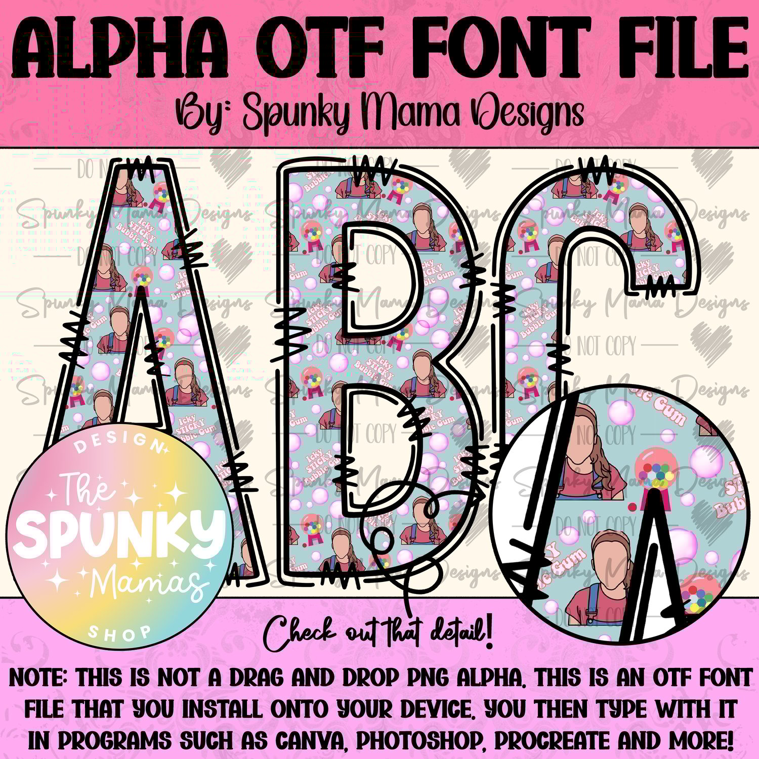 These fonts can be uploaded to photoshop, Canva Pro, Procreate and a few other programs. Not all programs support these type of otf files.