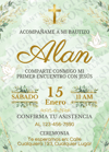 ✝️ Invitación de Bautizo Blanca con Verde, Plantas y Cruz Dorada 🌿