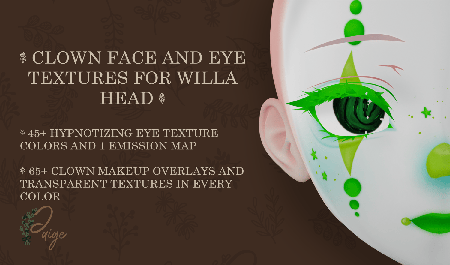 Bring your playful clown aesthetic to life with this texture pack designed for the Willa Head.