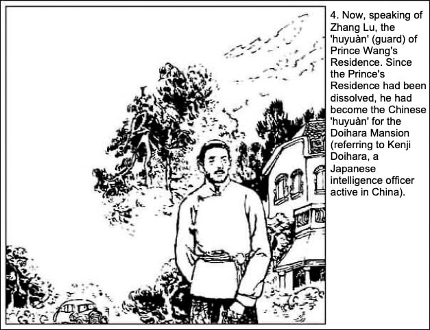4. Now, speaking of Zhang Lu, the *huyuàn* (guard) of Prince Wang's Residence. Since the Prince's Residence had been dissolved, he had become the Chinese *huyuàn* for the Doihara Mansion (referring to Kenji Doihara, a Japanese intelligence officer active in China).