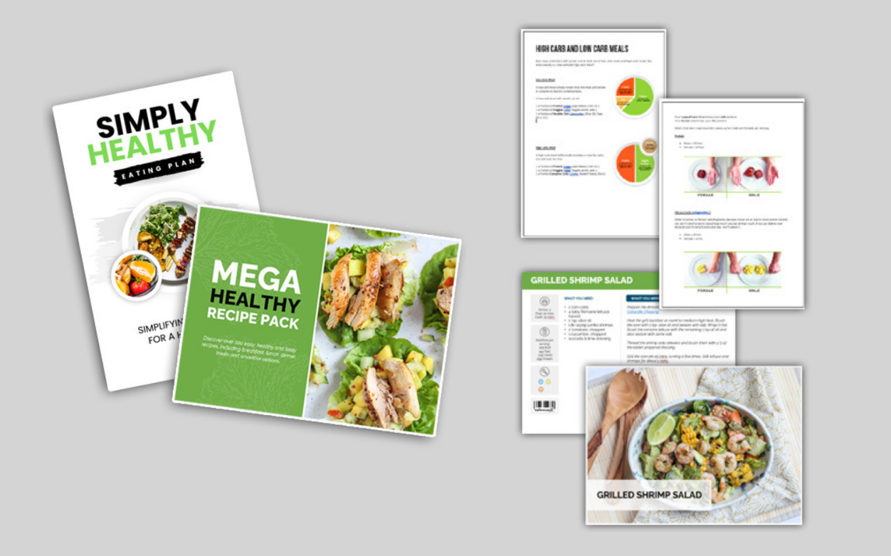 - On top of that you will get the Mega Healthy Recipe Pack that includes healthy and tasty recipes for breakfast, lunch and dinner.