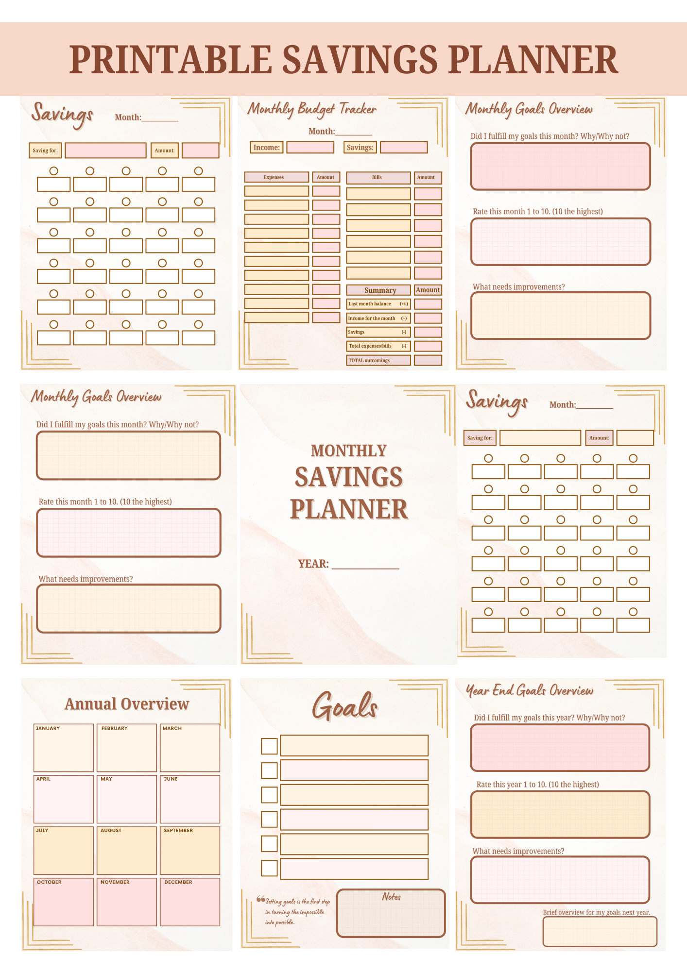 Monthly Savings Planner | Minimalist Beige Pink Planner | Savings Tracker | Budget Planner | Printable