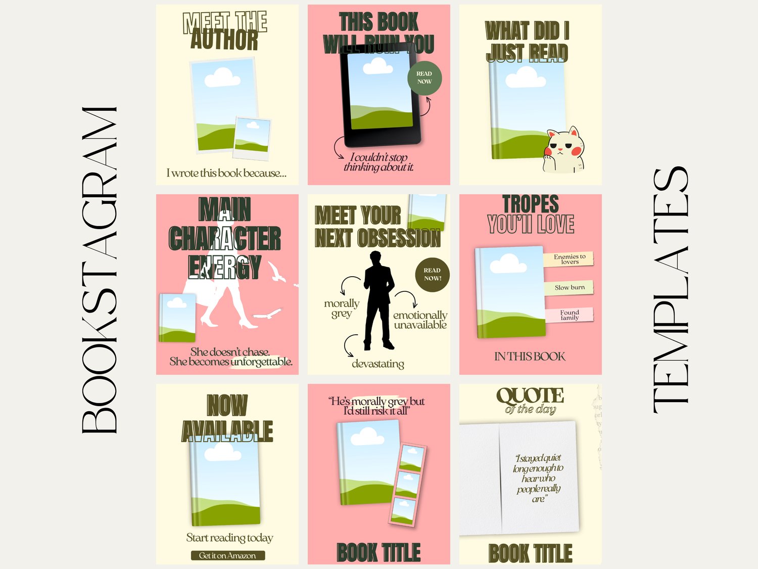 Bookstagram Templates for Authors, Book Marketing Kit, Canva Templates for Writers, Book Promotion Set