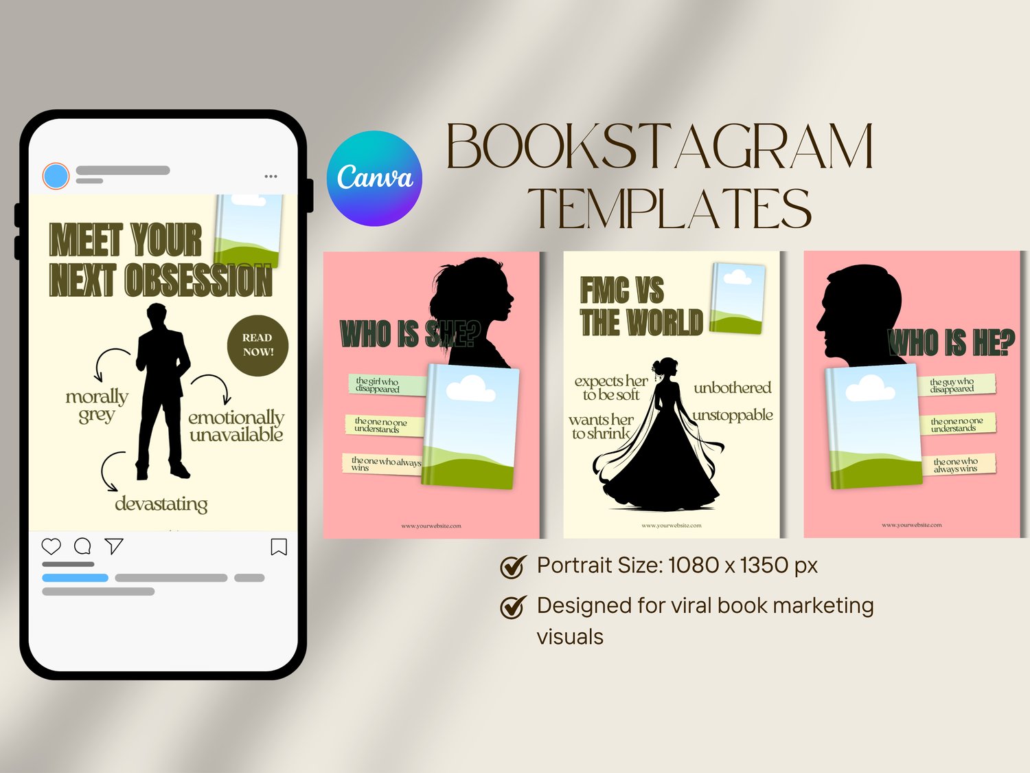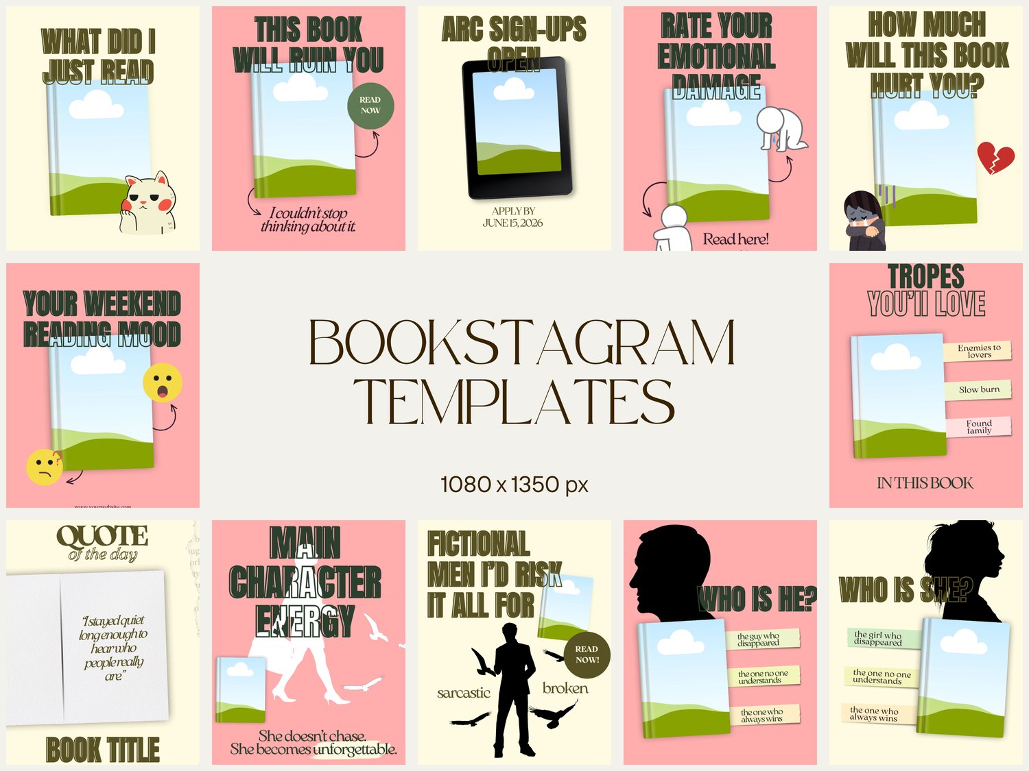 These templates are designed using Instagram trends and BookTok-style hooks that increase clicks, saves, and engagement — helping your content reach more readers organically.