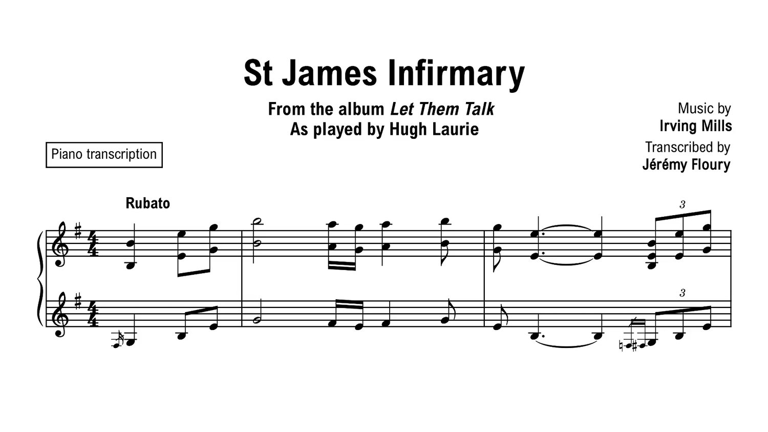 Transcription of St James Infirmary, as played by Hugh Laurie.