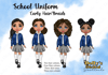 Instant digital download of our School Girl with Curly/Braid Hairstyles in Navy Uniform PNG (72 PNG’s included one)