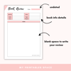 Reading log | Book Review | Reading Tracker Printable | Reading Journal | Book Tracker | Reading Challenge | PDF Download