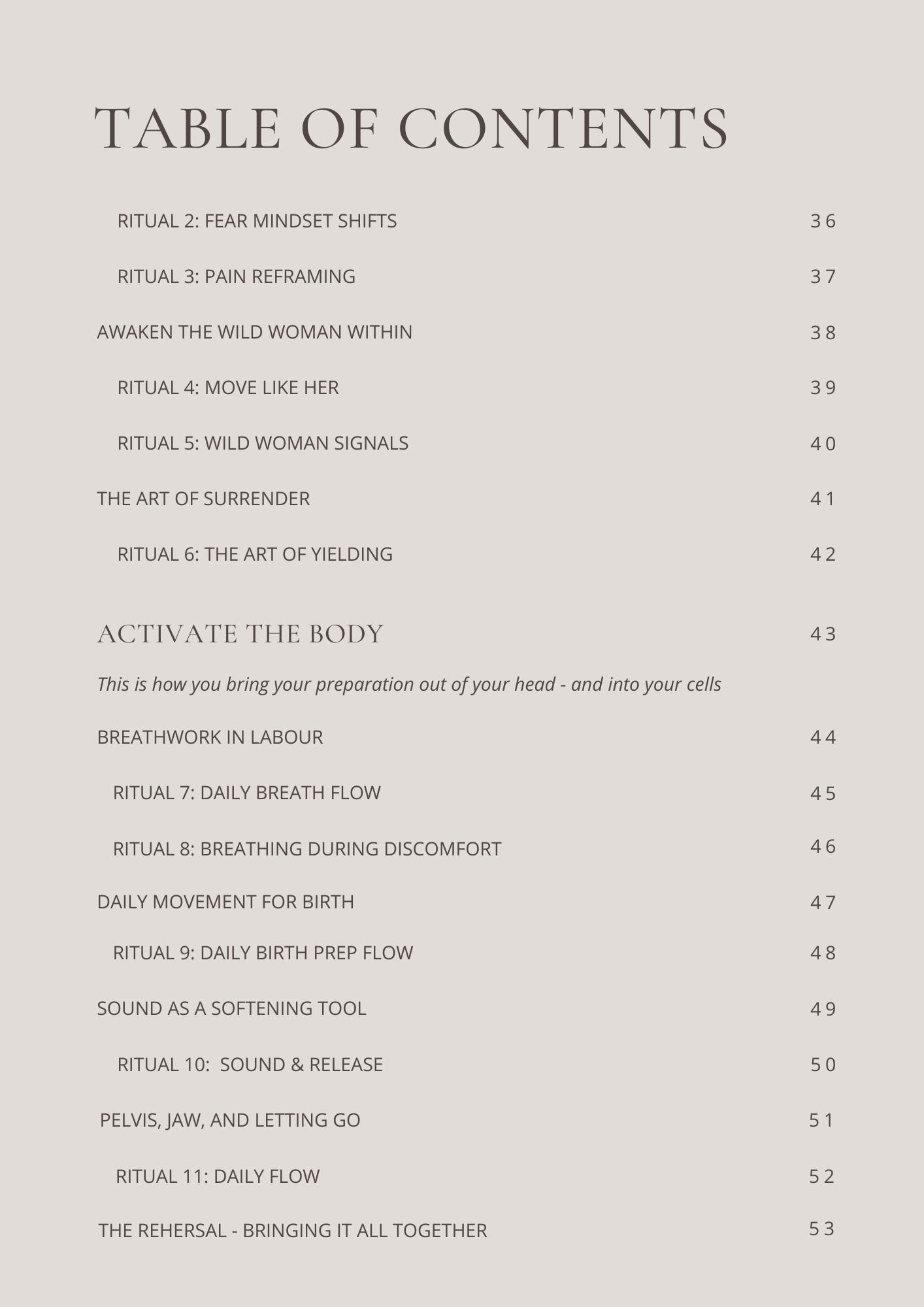 - Daily rituals and connection-based practices to help your body build up the hormones that make labour work.