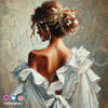 Immerse yourself in the grace and beauty of this elegant oil painting, showcasing a woman in a flowing white ruffled dress. The soft brush strokes and refined details capture the essence of timeless beauty, perfect for adding a touch of sophistication to your space.