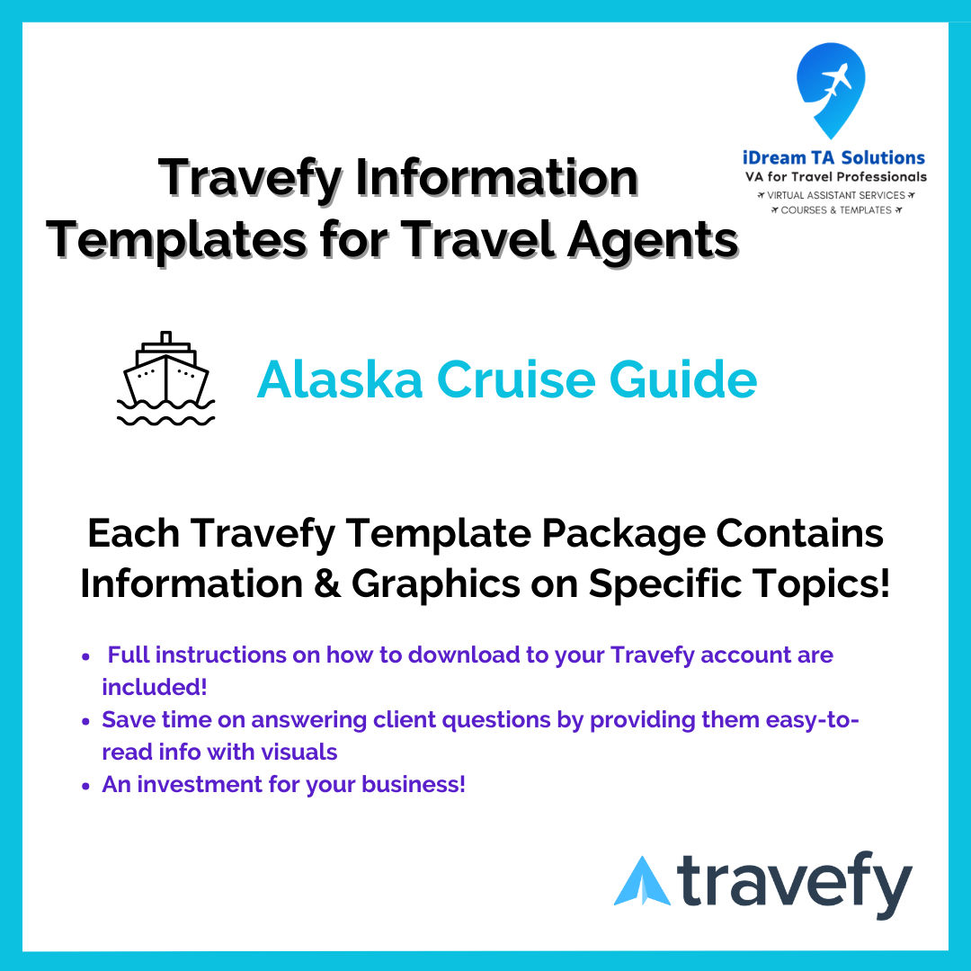 Ready-to-use Travefy templates that cover essential Tips & Tricks for a cruise to Alaska! Ensures your clients have all of the information in a logical, easy-to-read format with graphics.